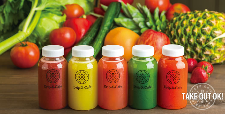 MENUコールドプレスジュースは、果物や野菜の水分をゆっくり圧搾(プレス)して作る、今注目のヘルシーなフレッシュジュース。栄養価が高いだけでなく、果物や野菜の皮などが入らず水分だけを摂取できるため、消化しやすく体にやさしいのも特長です。