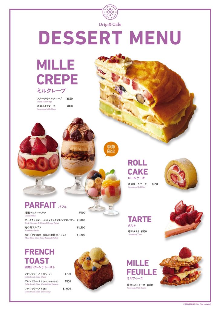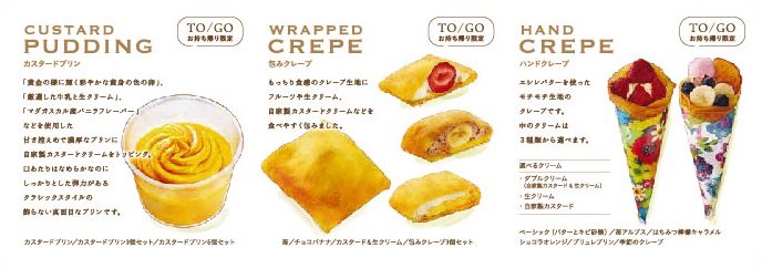 新スイーツブランド「CustarDrip」のテイクアウトメニューがおすすめ!キュートだけど満足感たっぷりの『クレープ』や、自分へのちょっとしたご褒美やお土産に最適な『プリン』はいかがでしょうか。また、カフェメニューでは、苺を贅沢に使用した『パフェ』や『ミルクレープ』、『タルト』など、フルーツまみれでインパクト絶大な商品を取り揃えております。フードメニューとしては、肉厚な『バーガー』や、パンの上にはみ出るほどのお肉や野菜などを乗せた『オープンサンド』でお腹も満足していただけるよう、さまざまなメニューをご用意しております。「Drip-X-Cafe ホワイティうめだ泉の広場店」
