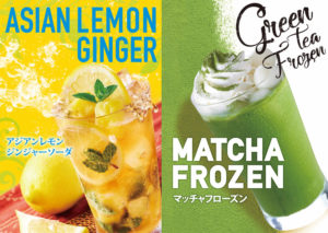 ・抹茶フローズン※JR新大阪駅店のみ取り扱い 790円(8月31日まで販売) ・アジアンレモンジンジャーサイダー 550円(9月30日まで販売)